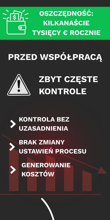 Mniej kontroli przełożyło się na realne oszczędności — koszty spadły rocznie o kilkanaście tysięcy euro.
